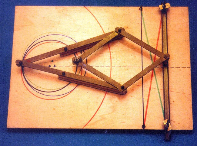 ポーセリエの反転器 OAPBQ がある。 点Pは、直線(溝) s 上の線分を滑り動く。 このとき、この ポーセリエの反転器 OAPBQ による点Pに対応する点Qは、点Oを通る円を描く。 逆に、点Qによって決まる点Pの動きは